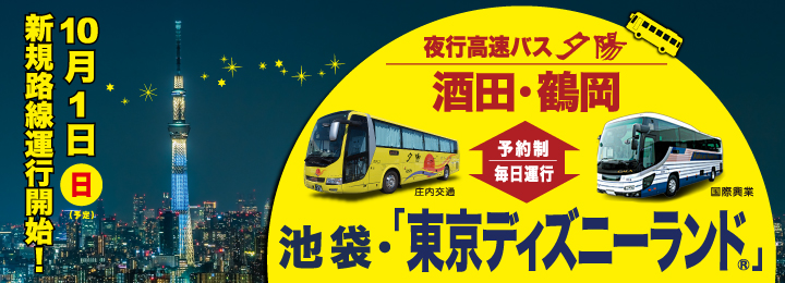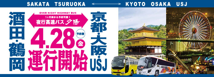 The intercity express service is operated everyday, with overnight and daytime services, connecting the Shonai area with various places in Japan. Three-seat row buses with ample space between independent reclining seats are used for the overnight service to provide you with comfortable travels.