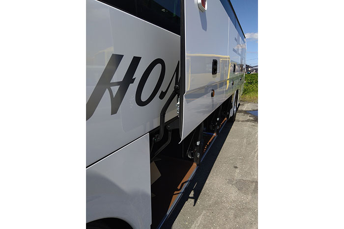 広々とした室内は27~55人まで乗車できます。長時間走行でも疲れの少ない本格バケットシートを使用。ボディは防音性に優れ、静かな時を過ごすことができます。